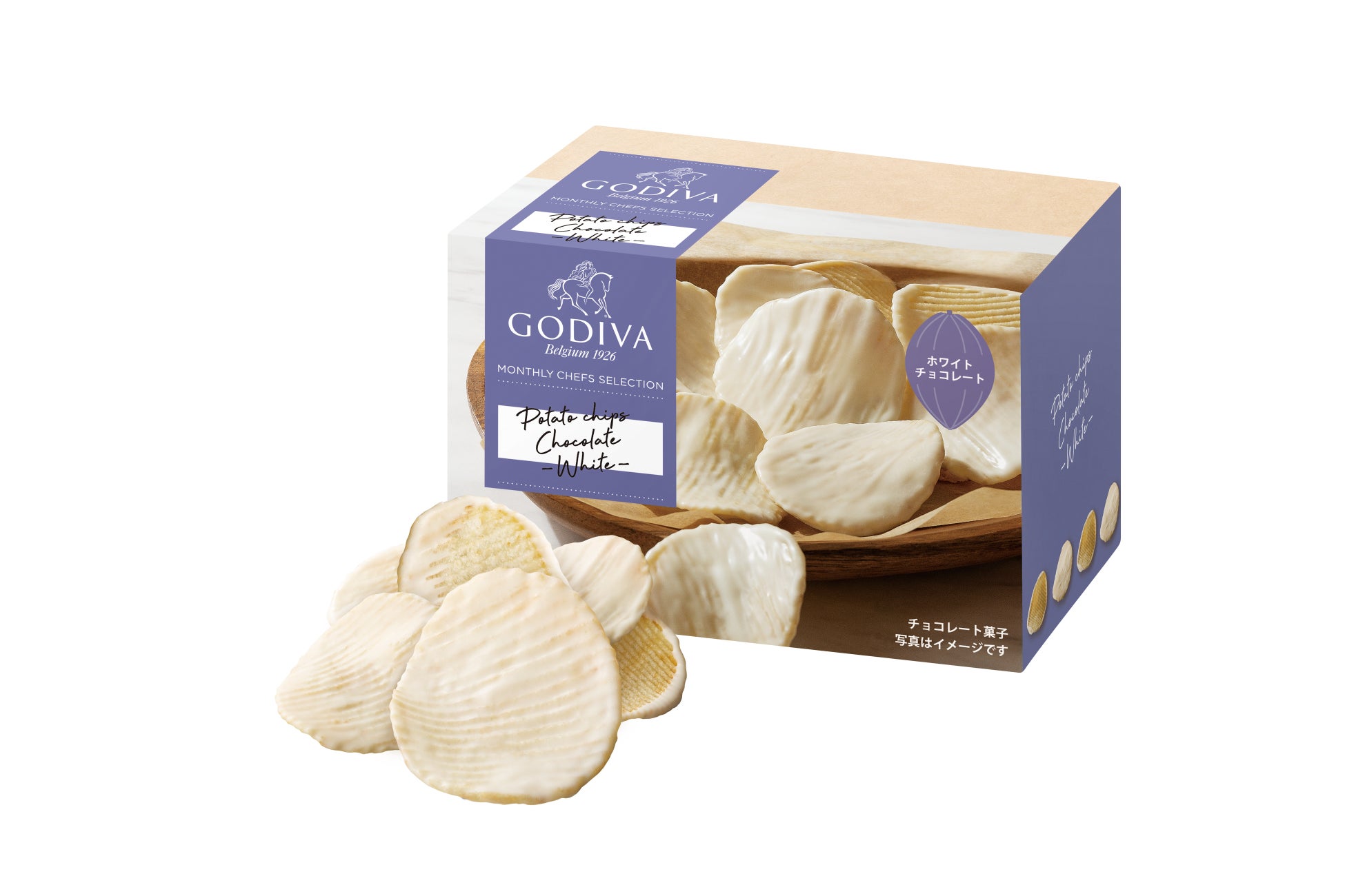 サクッとした食感のポテトチップスに、ベルギー産のホワイト チョコレートをコーティングしました。濃く深く優しい甘さと ほどよい塩味が、リラックスタイムにもおすすめです。