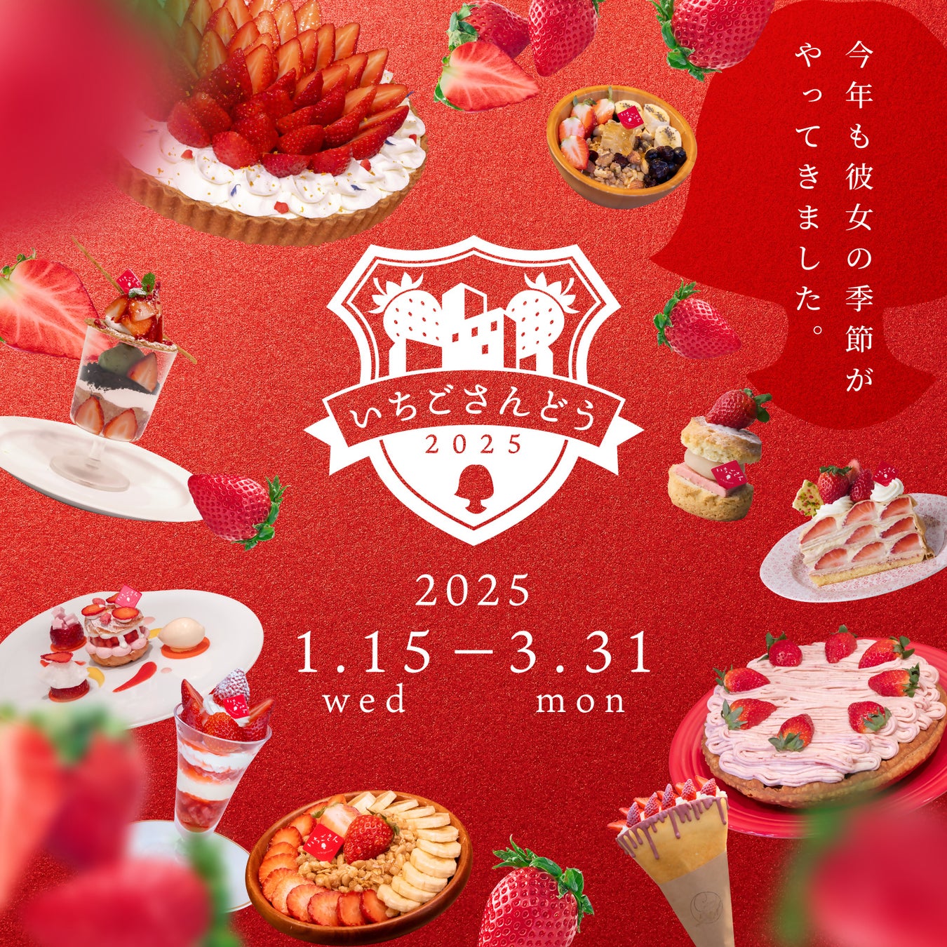 4年目を迎える「いちごさんどう2025」は、 2025年1月15日(水曜日)の「いちごの日」から3月31日(月曜日)まで2ヶ月に渡り開催。表参道の人気カフェ・レストラン10店舗が、デビュー7年目の佐賀県産ブランドいちご「いちごさん」を使用した絶品スイーツ14品を展開します。“中まで赤い”美しい見た目とやさしい甘さを生かした多彩なメニューが登場します。