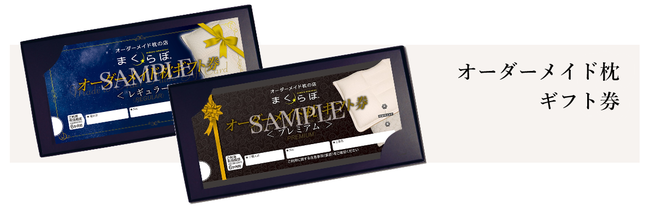 まくらぼ実店舗とオンラインショップにて購入できるオーダーメイド枕ギフト券はまくらぼ実店舗にてオーダーメイド枕と引き換えることのできるギフト券です。