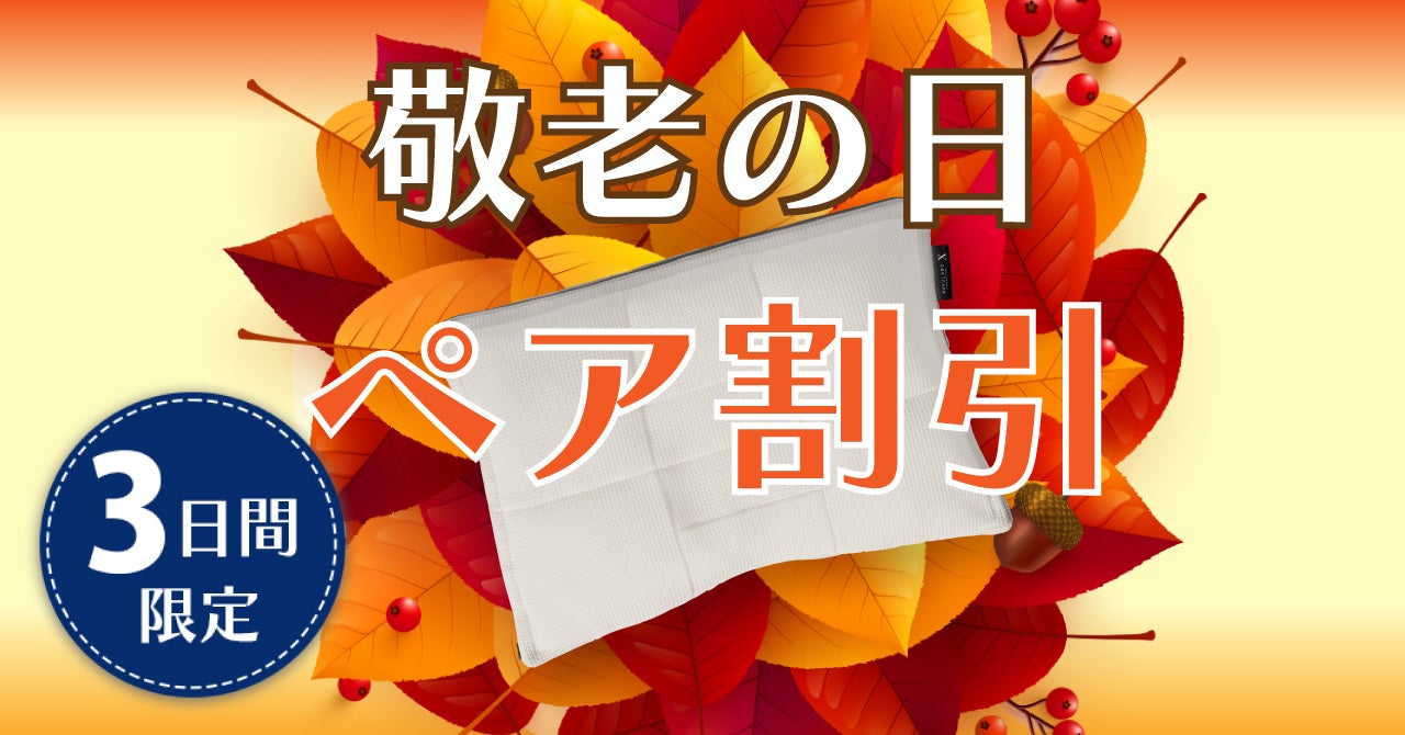 これは、おじいちゃん、おばあちゃんお二人とも元気でいてもらえるよう、オーダーメイド枕を2点同時購入でお得にお買い求めいただける『敬老の日 ペア割引』を2023年9月16日(土)、17日(日)、18日(月祝)の3日間限定で行うものです。