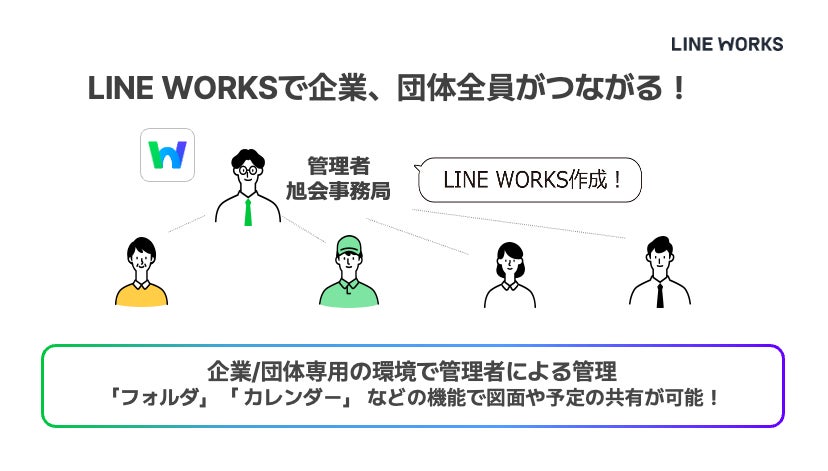 旭建設:協力会のためのLINE WORKSを開設し、協力会のメンバーをLINE WORKSに招待、同じテナントで全ての機能を一緒に利用