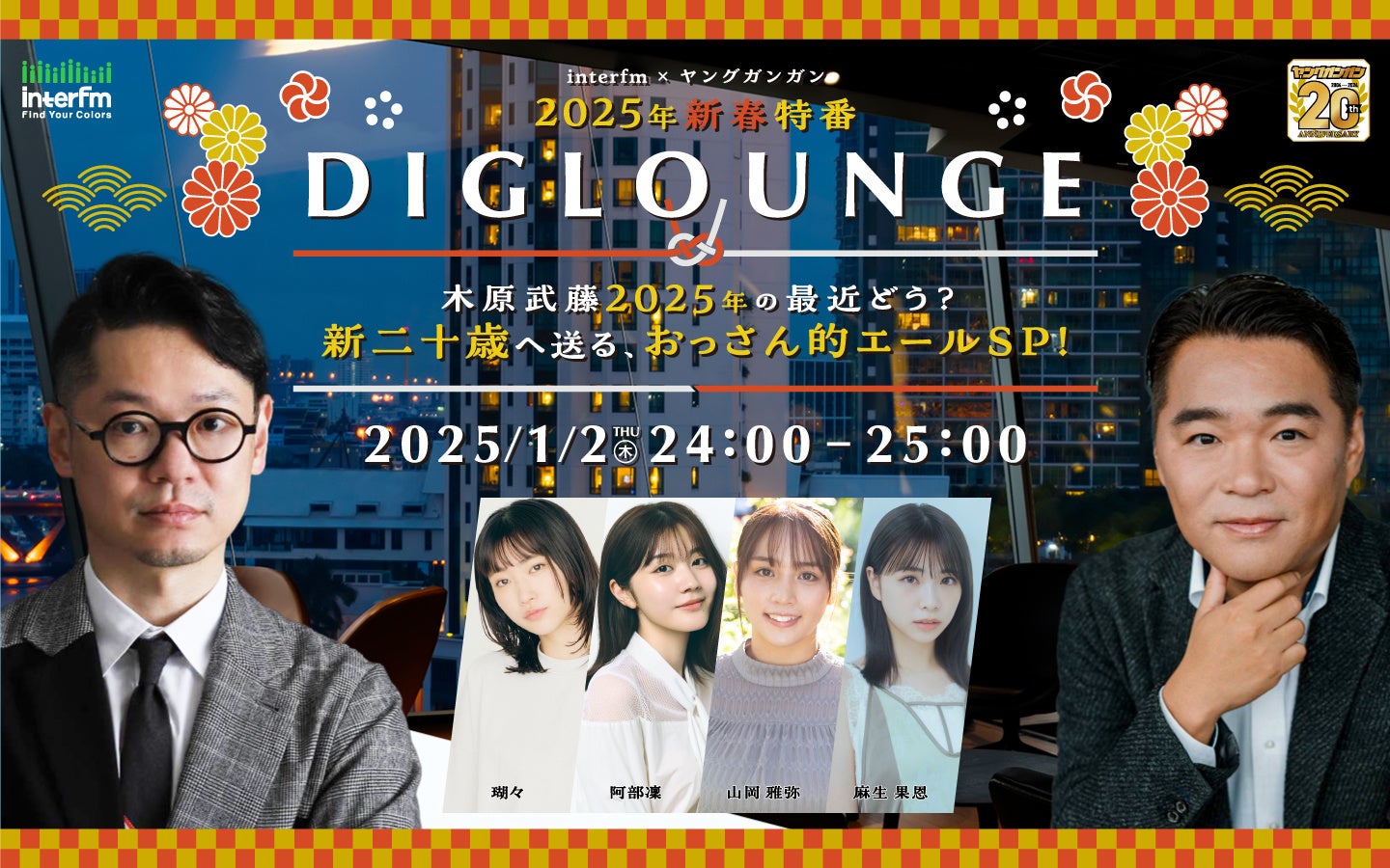 2025年 新二十歳になる注目のゲストが登場『interfm×ヤングガンガン 2025年新春特番 DIGLOUNGE ~木原武藤2025年の最近どう?新二十歳へ送る、おっさん的エールSP!~』決定!
