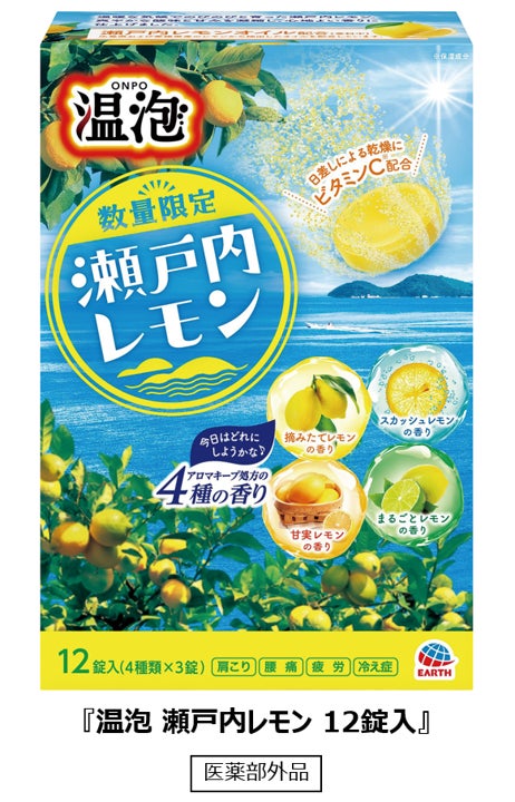 アース製薬株式会社(本社:東京都千代田区、社長:川端克宜、以下 「アース製薬」)は3月10日(月)に、爽やかな香りと清涼感のある湯色が特長の炭酸入浴剤『温泡(おんぽう) 瀬戸内レモン 12錠入』を数量限定で発売しました。