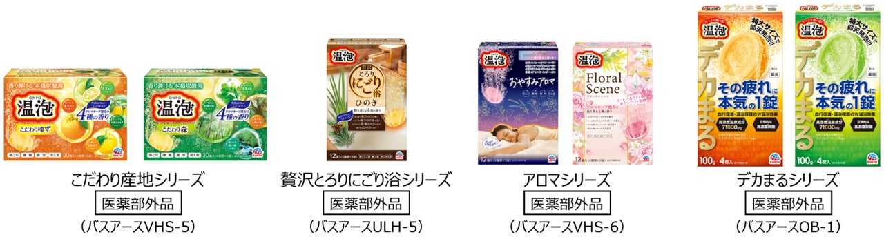 2015年に誕生した『温泡』は、今年10月で10周年を迎えます。素材そのものの自然な香りにこだわり1箱で4種類の香りと湯色を楽しめるアソートタイプの炭酸入浴剤です。2024年8月には、新たに「アロマキープ処方」を採用し、お湯に錠剤を入れた瞬間から香りが広がり長く楽しめる入浴剤に生まれ変わりました。また、お好みに合わせてお選びいただける豊富なラインアップを取り揃え、ご好評をいただいています。