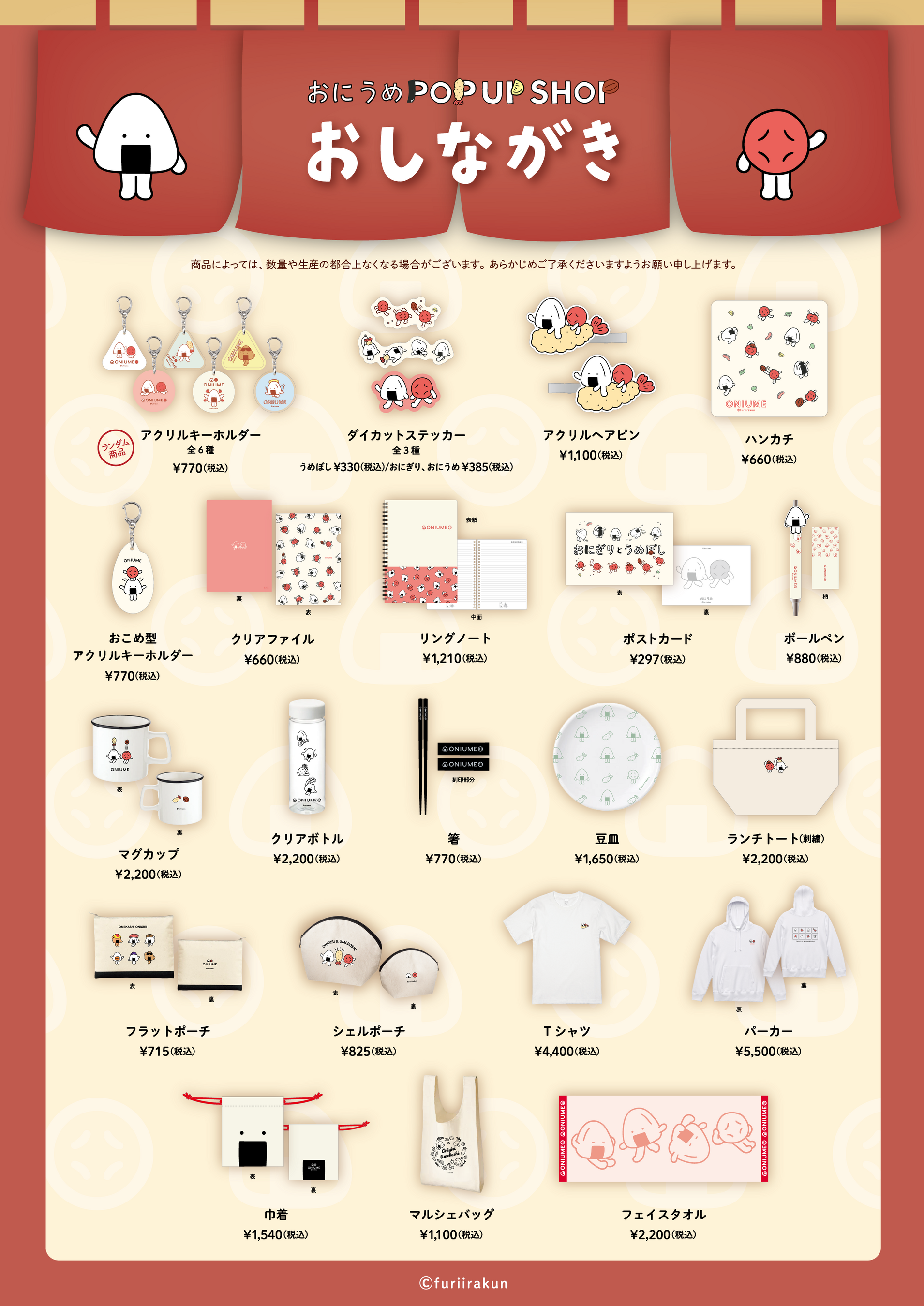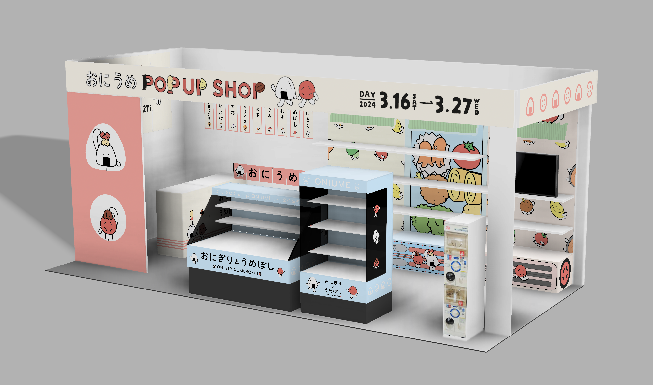 SNSで注目を集めている「おにぎり」と「うめぼし」によるキャラクター「おにうめ」がルミネエスト新宿にて初のポップアップを開催します。おにぎりのメニュー札やチルドケースをイメージした棚など、お弁当屋さんをイメージした店内には、豆皿や箸などのキッチンアイテム、Tシャツやポーチなどのアパレル・雑貨を含む、合計20点を超える新アイテムが並びます。