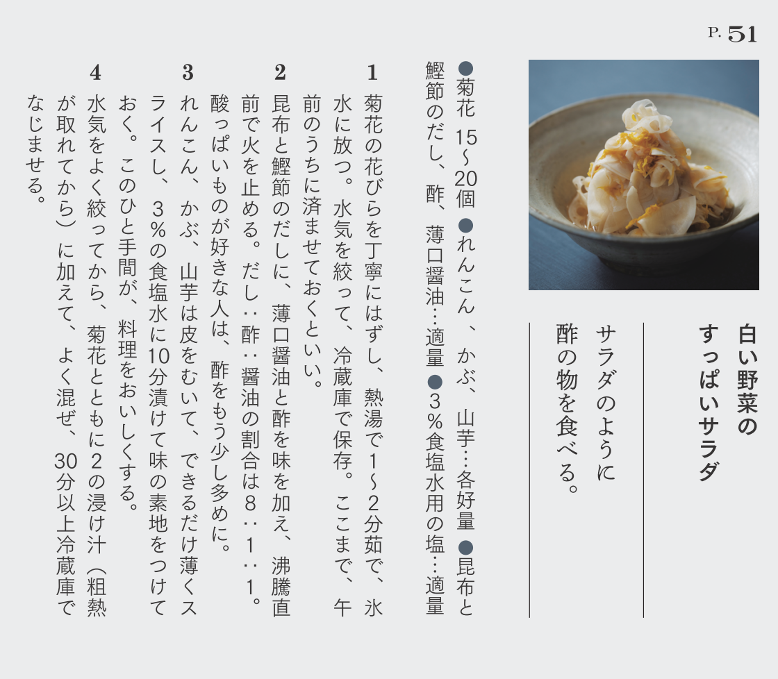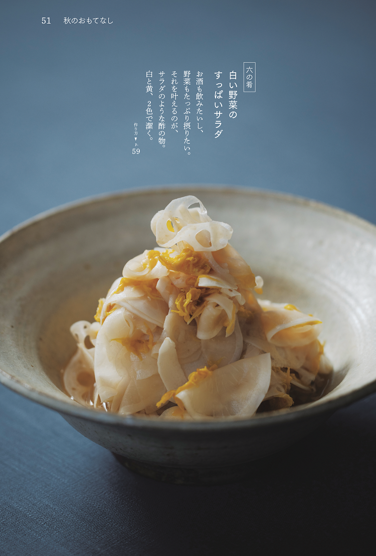 栄養バランスからも段取りからも自由になって肴の準備をしたら、飲みたいお酒と合わせて自分だけの小酌を始める……そんなふうに寿木さんが日々楽しんできた即興のお酒と肴を、歳時記とともに12か月分紹介しています。