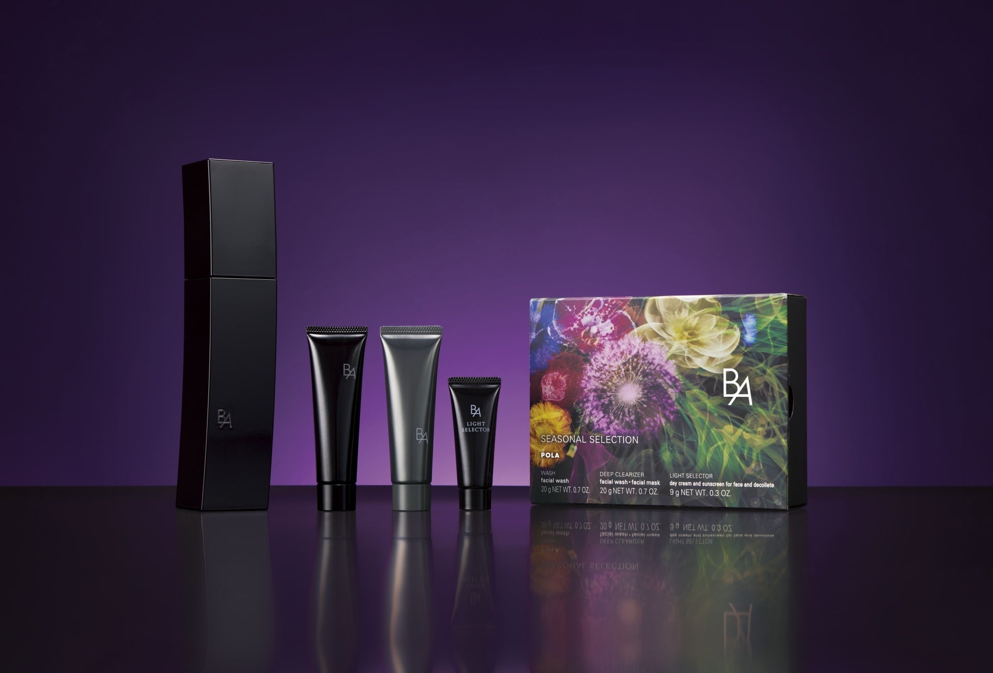 また、肌に吸いつくような高弾力な泡で、しっとり透き通るような洗いあがりの 「B.A ウォッシュ」、美容成分※5を抱え込んだ、なめらかにのび広がり密着するマスクが、糖化※6やくすみ※7のある角層を洗い落とし、澄み渡るような透明感とハリ感を目指すディープ洗顔マスクの「B.A ディープクリアライザー」、紫外線・近赤外線から肌を守り、肌に良い「赤色光」を透過させ、ハリ感・弾力感のある肌を目指す日中用クリーム・日ヤケ止めの「B.A ライト セレクター」のミニサイズをセットにしました。汗や皮脂、紫外線や近赤外線の影響を受ける季節にこそ、お使いいただきたい限定セレクションです。
