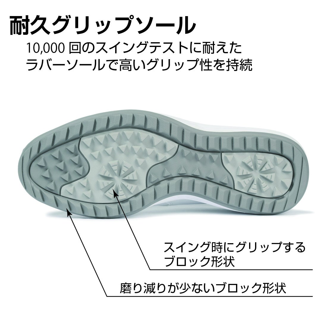 本商品は、価格を理由に機能性や品質を犠牲にせず、ゴルフをする上で必要な機能を兼ね備えたゴルフシューズを低価格で提供することにこだわり、開発いたしました。手に取りやすい価格と確かな機能性で、これからゴルフを始める方にはもちろん、頻繁に練習場に通うゴルファーのセカンドシューズとしてもおすすめです。高い耐久性とグリップ力、防水性能を兼ね備えた「耐久グリップゴルフシューズ」は、長く安心してご使用いただける商品となっています。