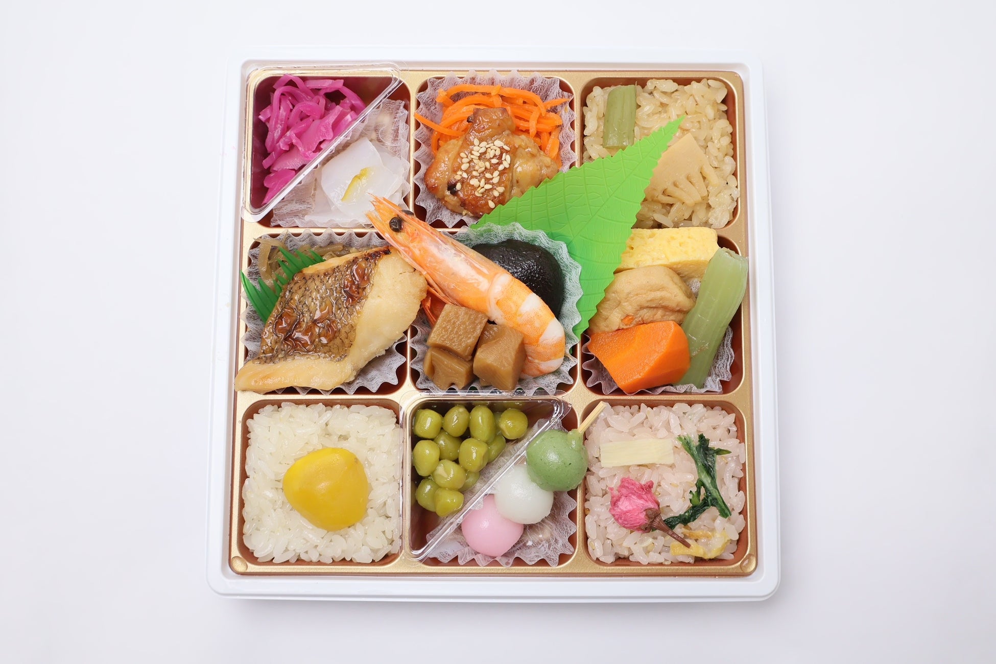 6桝のおかずに選べるおこわの行楽シーズンにぴったりな弁当