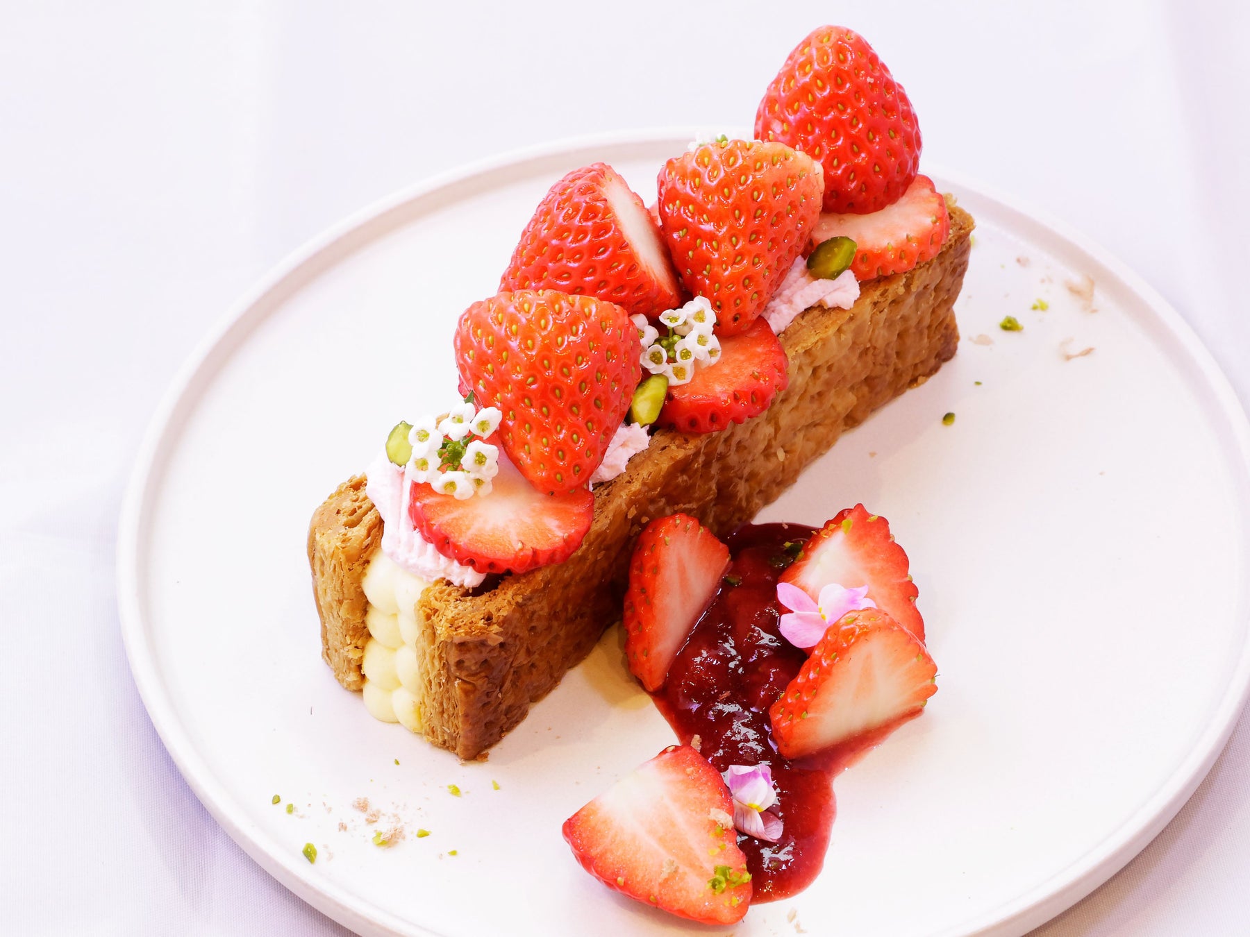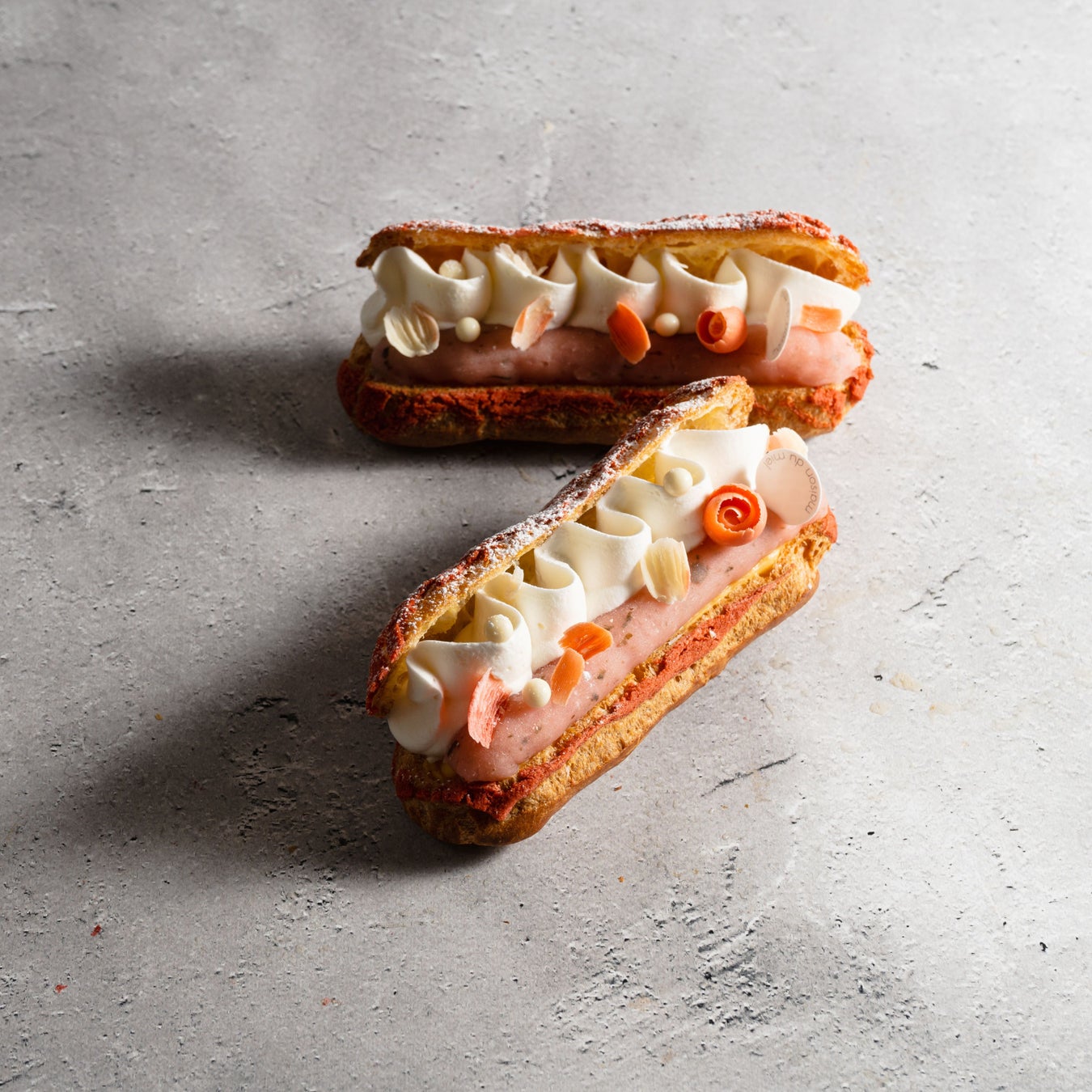 もち米入り道明寺餡を挟んだ桜餅風のエクレア