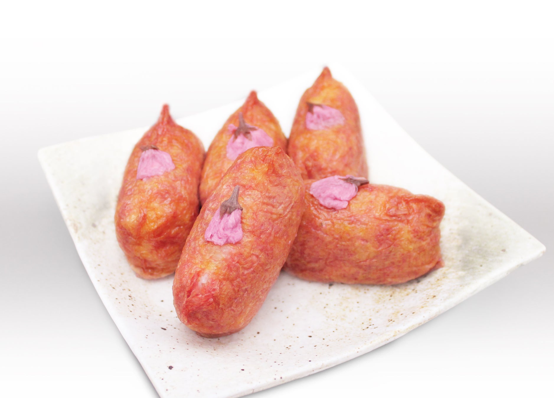 ほんのりピンクのお揚げで包んだ桜エビのいなり寿司
