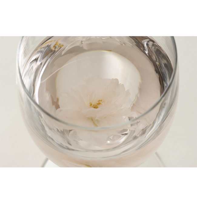 グラスに注ぐと八重桜の花びらが浮かぶ甘口ワイン