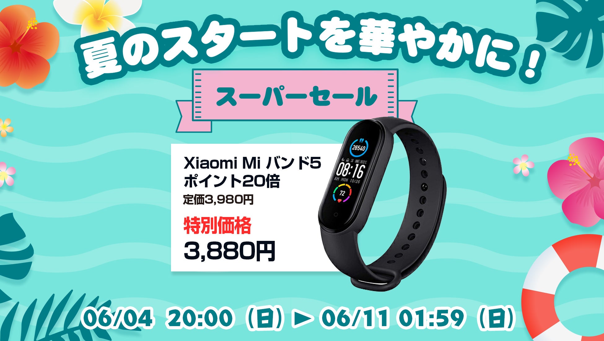楽天「Show !t」でポイントがザクザクたまる!シャオミMiバンド5を3,880円のセール価格で販売しポイント20倍プレゼント、さらに6月4日20時開始、楽天スーパーセールに参加
