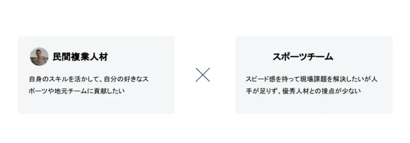 スポーツチームが複業人材登用により経営強化が可能になるサービスです。スポーツ業界の慢性的な人材不足による課題も解決します。