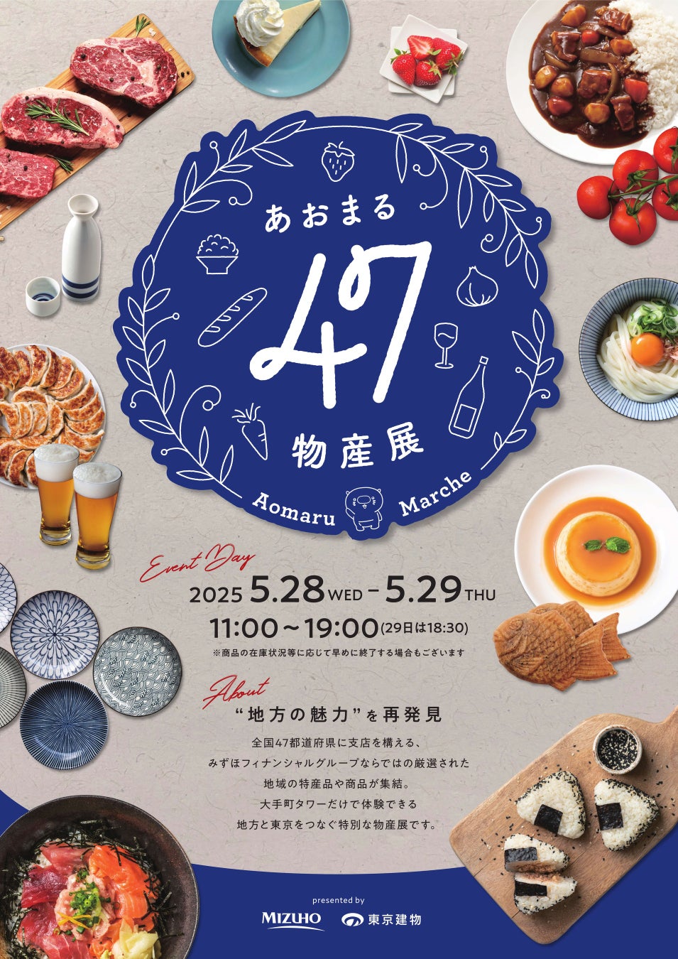 東京建物株式会社(本社:東京都中央区、代表取締役 社長執行役員 小澤 克人、以下「東京建物」)と株式会社みずほフィナンシャルグループ(本社:東京都千代田区、執行役社長 木原 正裕、以下「みずほFG」)は、地域創生に向けた取り組みの一環として、日本全国の名産品を集めた「あおまる47物産展」(以下「本物産展」)を大手町タワー(東京都千代田区)内の「森のプラザ」で、2025年1月より定期開催しています。
