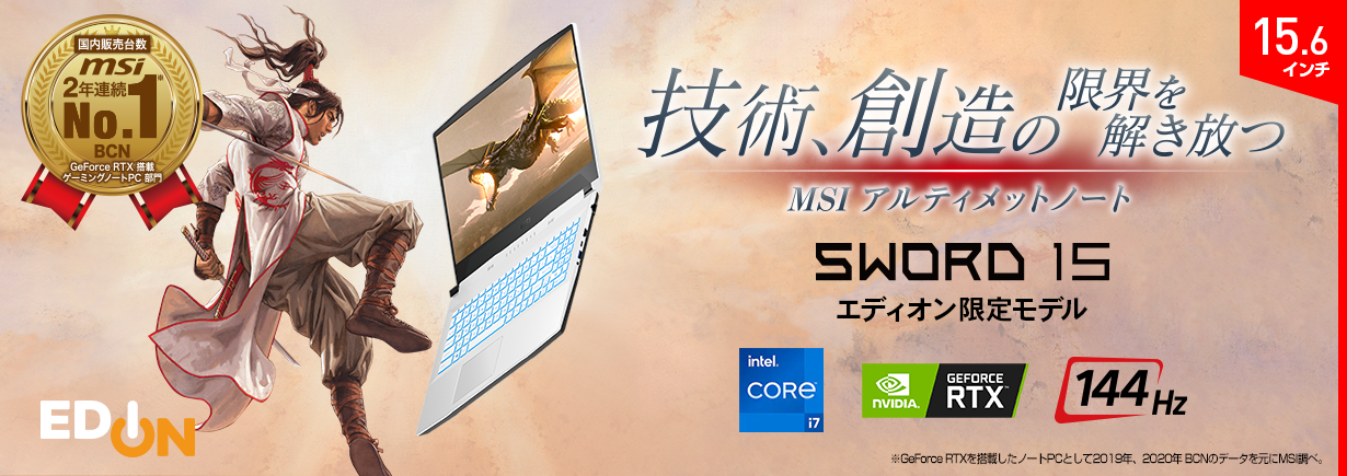 2022年新生活を新しいノートPCと始めよう! エディオン限定販売ゲーミングノート&ビジネスノートPC 「Sword 15」「Modern 15」新生活オリジナルモデル発売
