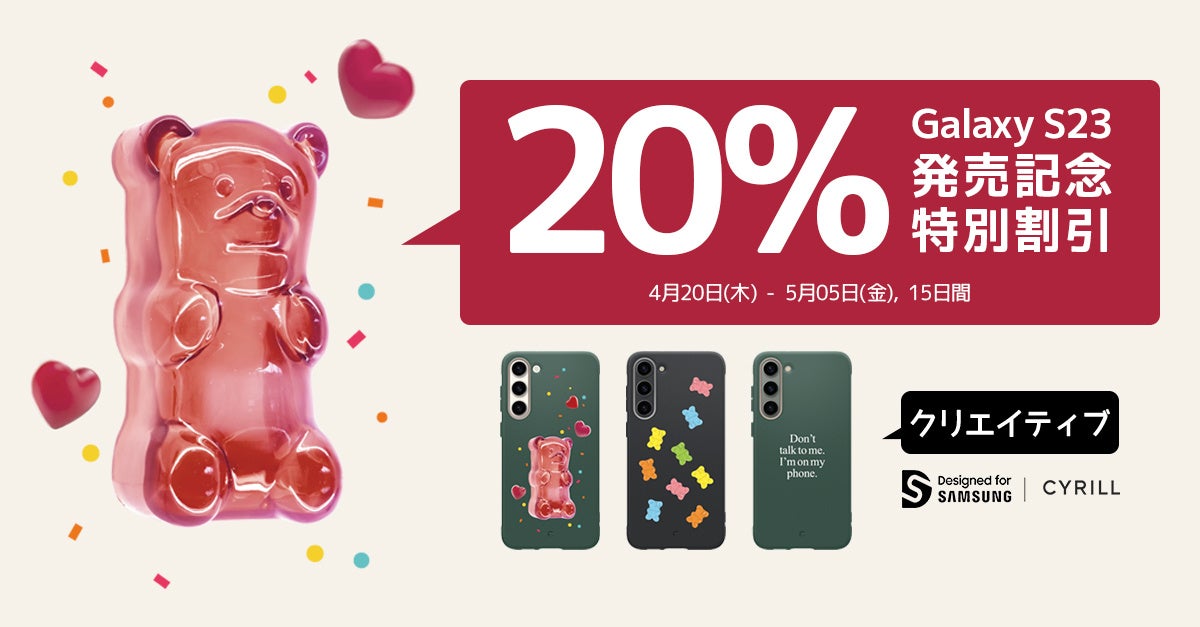 Spigenの姉妹ブランドCYRILL(シリル)がGalaxy S23シリーズのクリエイティブ製品の発売を記念して、CYRILL(シリル)の全シリーズ製品に対して20%割引を期間限定で実施します。