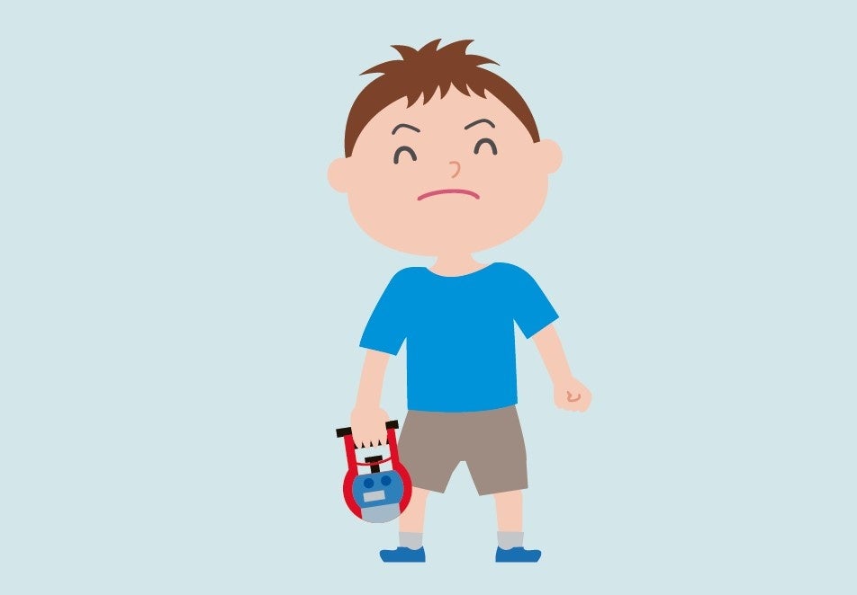 握力計で両手の握力を測定します。
