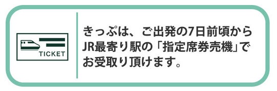 きっぷは、ご出発の7日前頃からJR最寄り駅の「指定席券売機」でお受け取り頂けます。