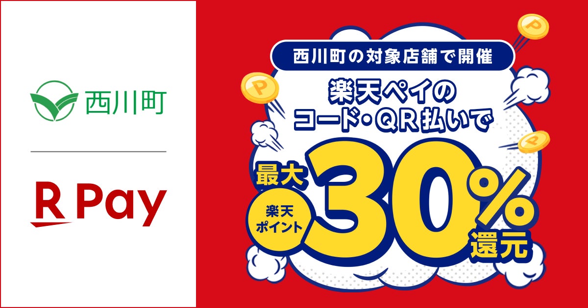 楽天ペイメント株式会社(以下「楽天ペイメント」)は、運営するキャッシュレス決済サービス「楽天ペイ」アプリにおいて、山形県西川町が2024年1月1日(月)から1月31日(水)まで実施する「西川町の冬がアツい!キャッシュレスで最大30%戻ってくるキャンペーン」に参加することをお知らせします。