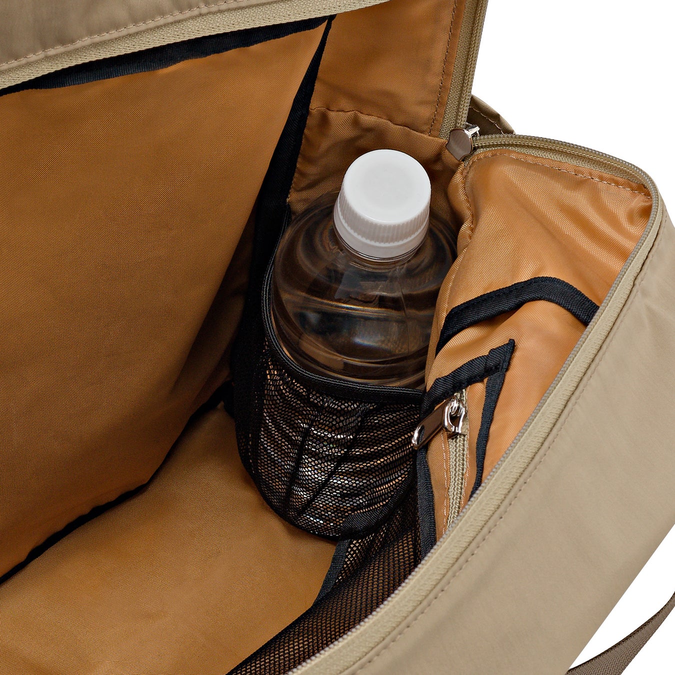 内側の両脇には液体ボトルなど立てて収納したいものを入れることができ、「片方は哺乳瓶、もう片方にはペットボトル」、「片方はお茶、もう片方にはジュース」など様々な使い方が可能です。
