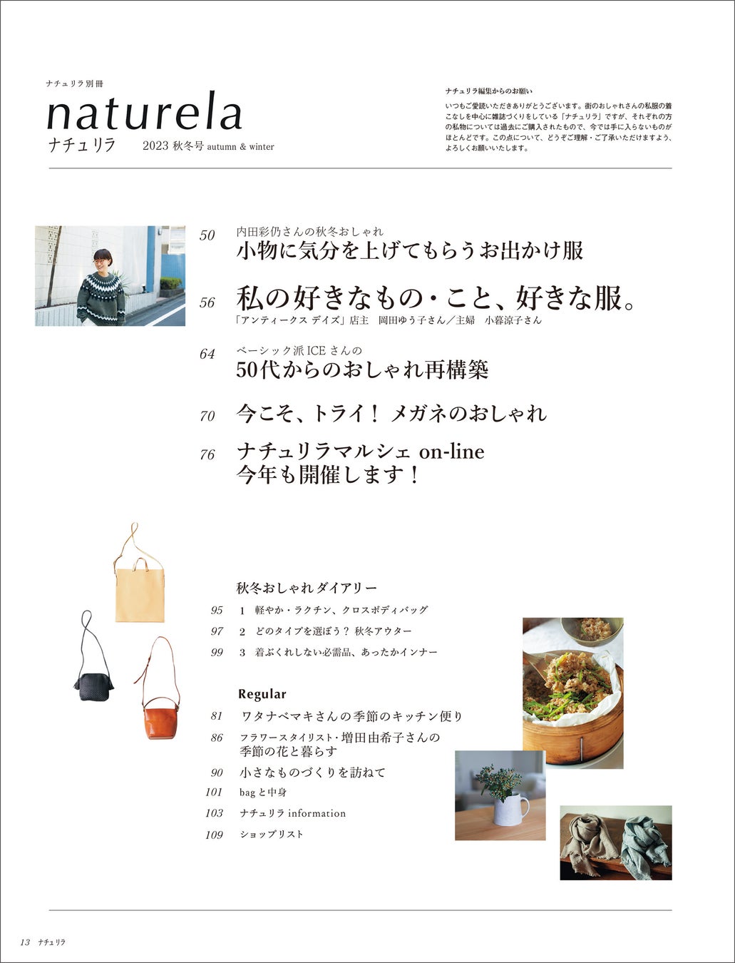 【普通が素敵】大人のおしゃれはさりげなく!10/6発売『ナチュリラ』2023秋冬号は女優・永作博美さんが表紙&巻頭企画で登場。10/20から期間限定オンラインショップ「ナチュリラマルシェ」を今年も開催
