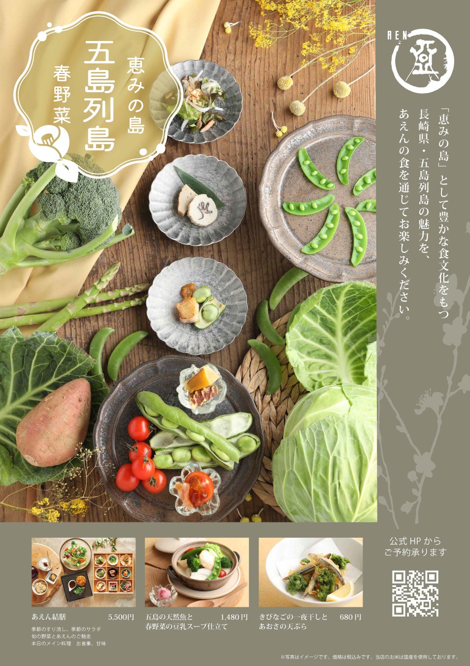 ■内容 : 長崎県・五島列島の食材の他、春野菜を活用した期間限定メニューを販売