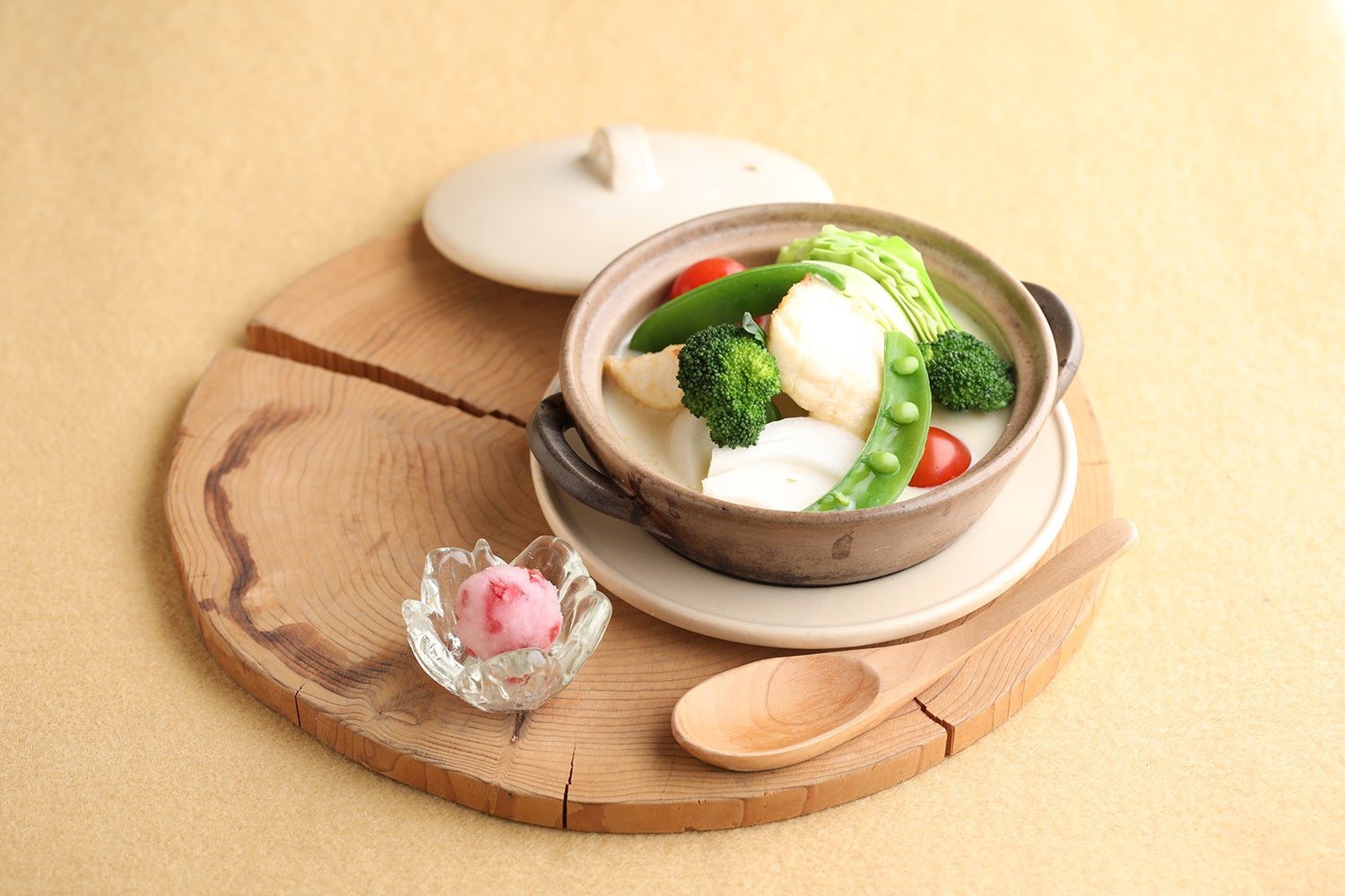 ◇五島の天然魚と春野菜の豆乳スープ仕立て(1,480円)