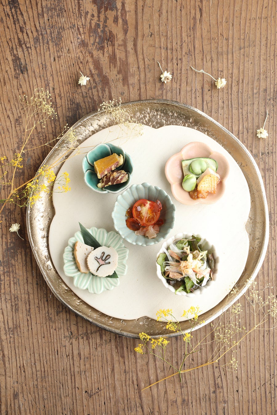五島列島の食材を集めた、『恵みの島』の魅力が感じられる五種の小皿の盛り合わせです。
