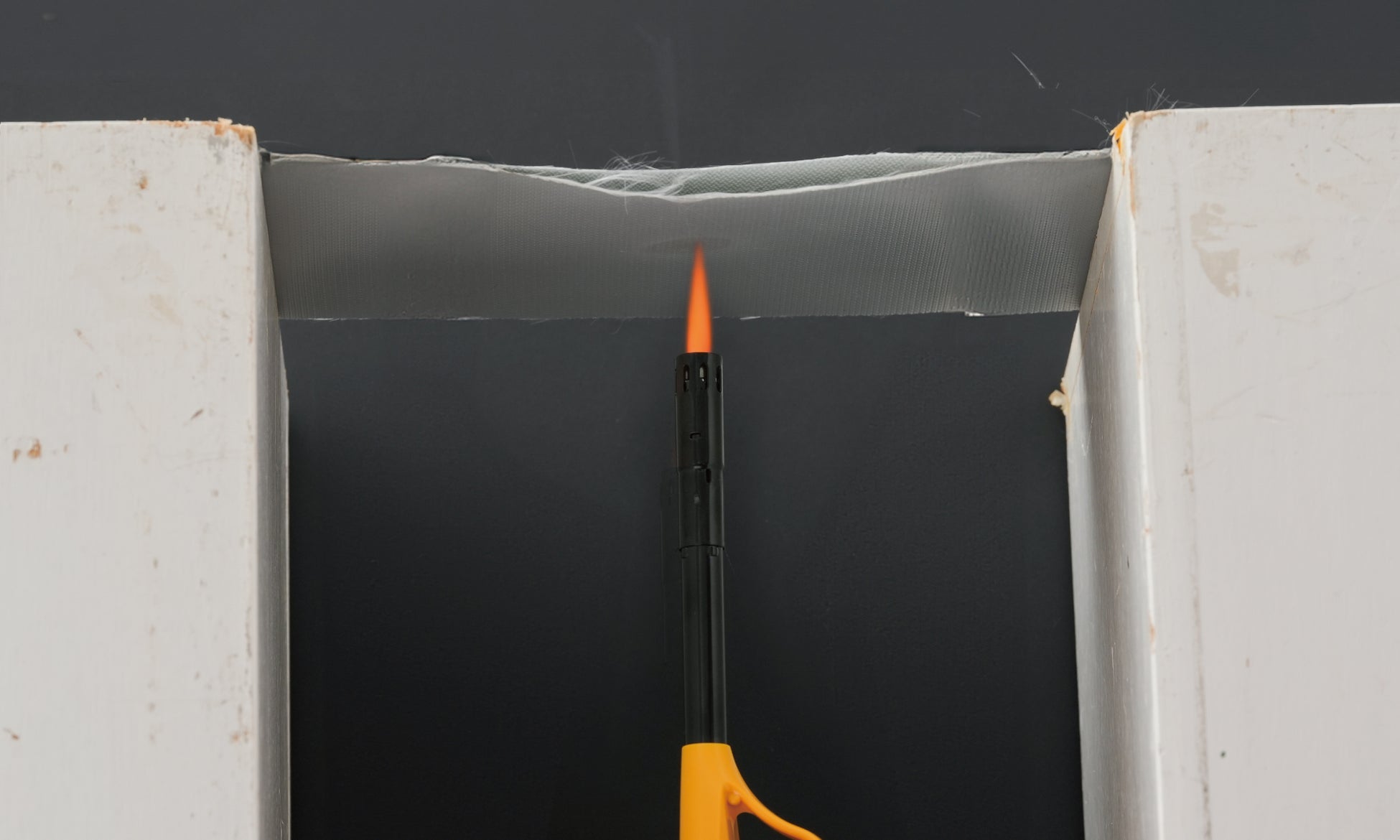 1200℃以上の火を1分以上当て続けた側は、その部分だけが燃えたが、反対側は燃えませんでした。そして穴あきや破れなどもなかったため、強い火力でも"炎が貫通しない"ことが自社テストにより証明されました。