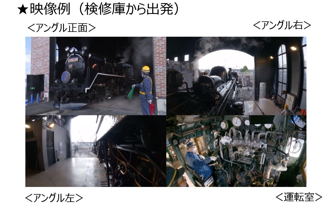 盛岡車両センターSL検修庫内での作業風景やGoPro3台で撮影した花巻駅~遠野駅間の走行シーン、客車内の映像をお楽しみいただけます