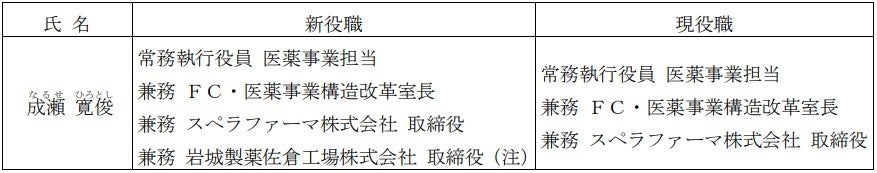 アステナホールディングス株式会社(本社:東京都中央区、代表取締役社長:瀬戸口 智、証券コード:8095)の連結子会社であるスペラファーマ株式会社(本社:大阪府大阪市、代表取締役社長:岩城 慶太郎)は、9月17日付の取締役会において、取締役の兼職の変更を決議しましたので、下記のとおり人事異動についてお知らせいたします。