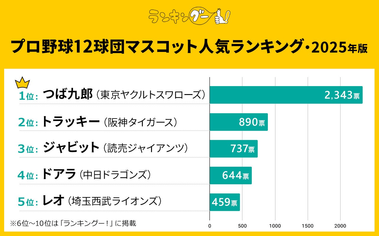 調査方法:株式会社CMサイトがインターネットリサーチした<プロ野球12球団マスコット人気ランキング・2025年版>のアンケート結果を集計。