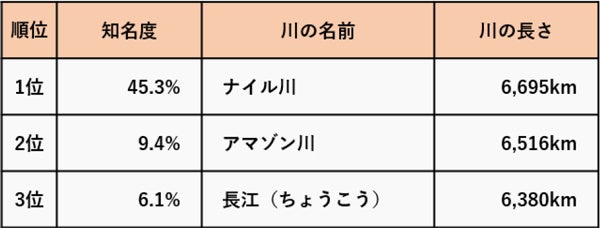 ■世界一長い川はナイル川! わかると答えた人の数は?