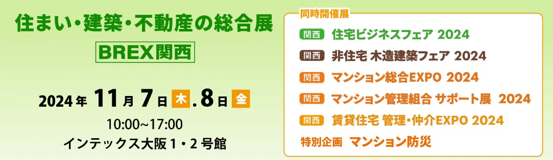 住まい・建築・不動産の総合展[BREX]実行委員会(実行委員長:堀 正人/運営:株式会社イノベント)は、2024年11月7日(木)・8日(金)の2日間、インテックス大阪1・2号館にて「住まい・建築・不動産の総合展 [BREX関西] 2024」を開催します。