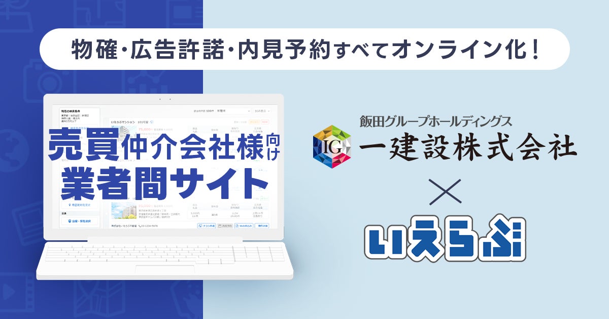 飯田グループホールディングスの中核企業である一建設に売買版「業者間サイト」を提供開始!売買物件の問合せ対応をオンライン化|いえらぶGROUP