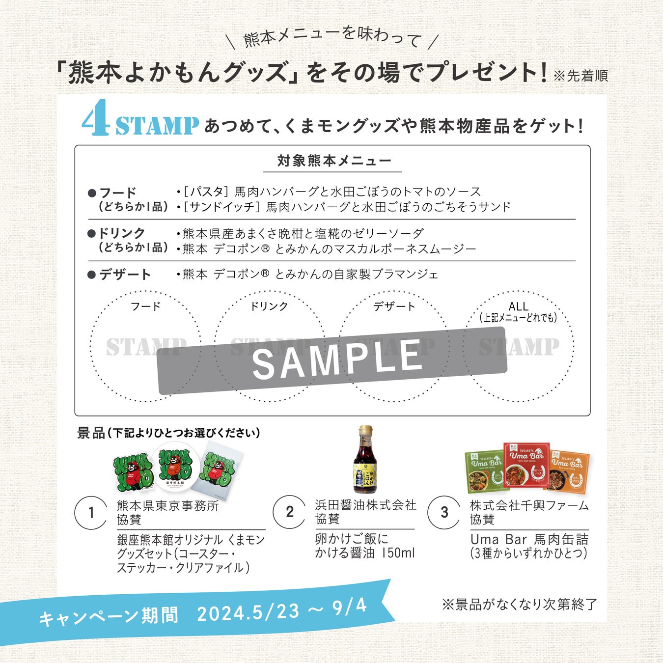 対象メニューを購入し、リーフレットのスタンプシートにスタンプを集めると、その場でくまモングッズや熊本