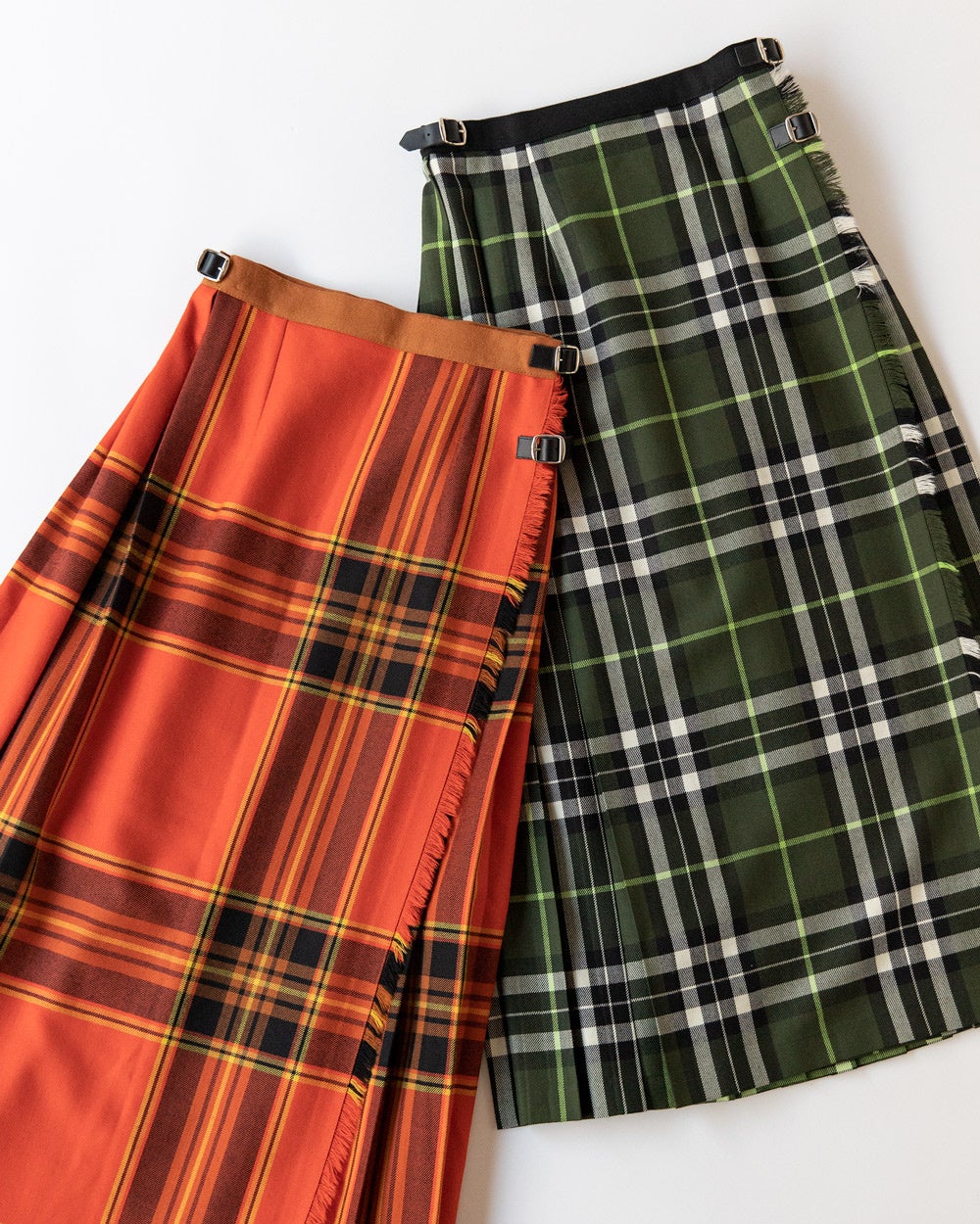 ウール100%の美しいタータン生地に総プリーツの仕立てが贅沢なスカート。