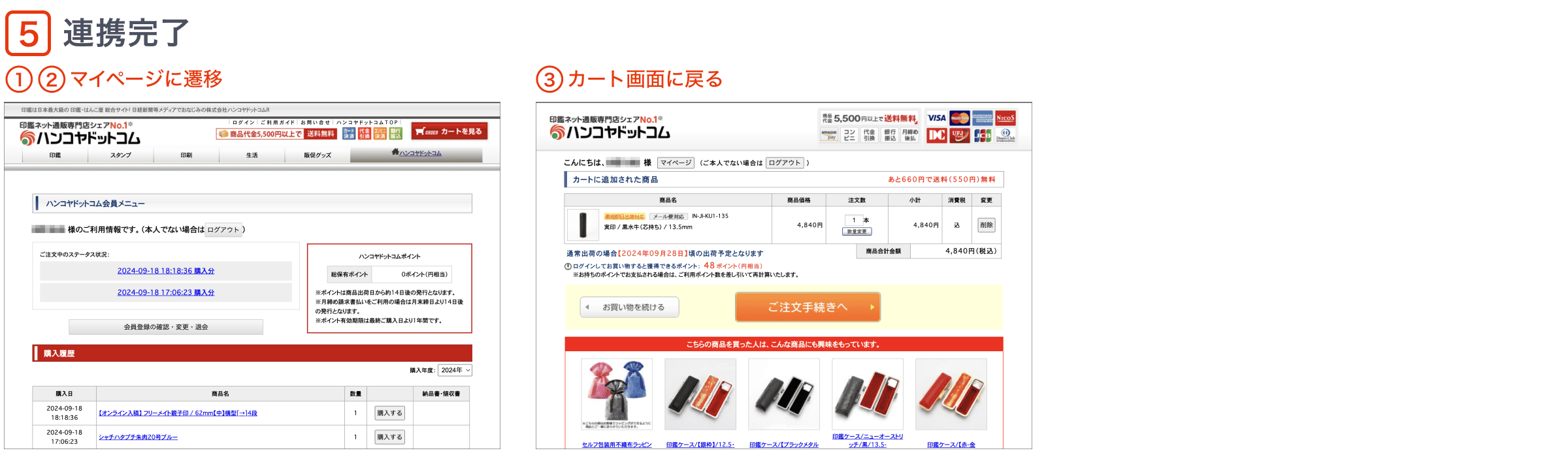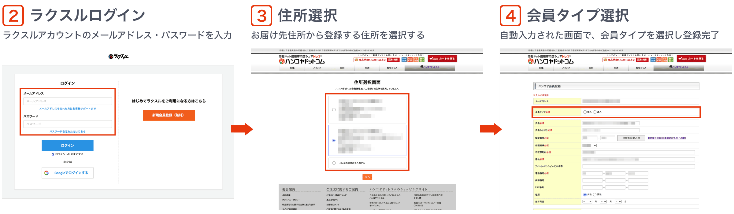 また、今回のアカウント連携により、ラクスルのアカウントを利用してハンコヤドットコムサービスの会員登録・ログインができるようになります。お客様は、追加の情報入力が必要なく、スムーズにご利用いただけることが特徴です。