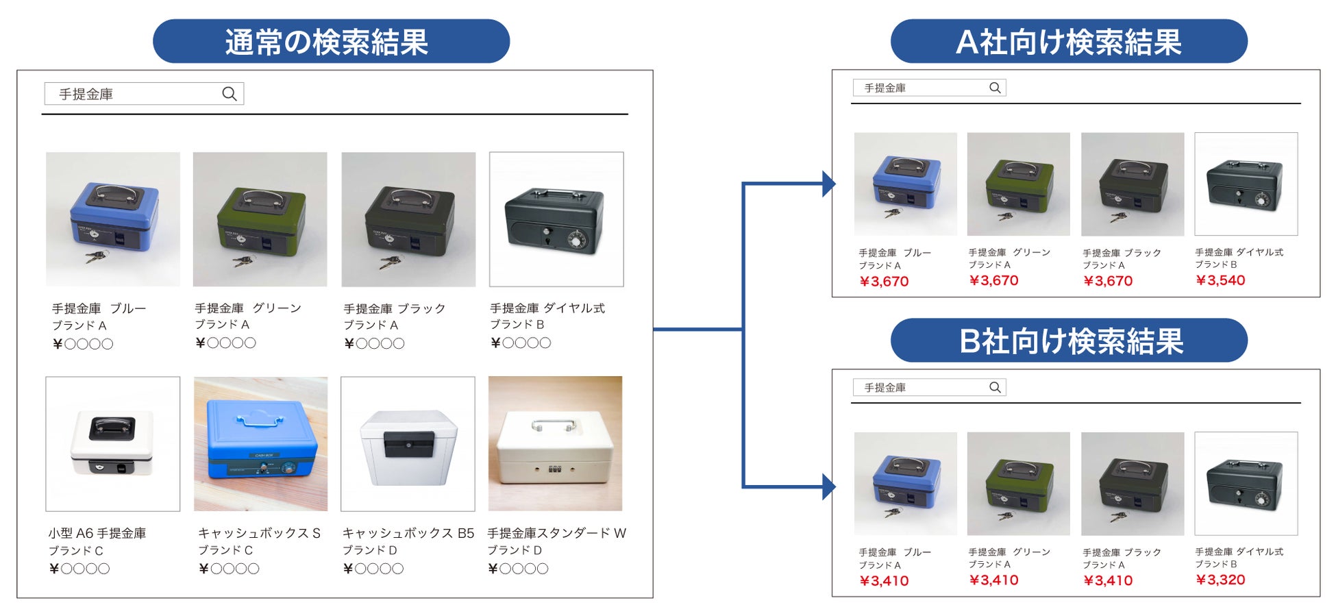 株式会社ジーニー(本社:東京都新宿区、代表取締役社長:工藤 智昭、以下ジーニー)が提供・開発するサイト内検索サービス「GENIEE SEARCH」は、BtoB ECサイト向けに「取引先ごとの商品・価格出し分け機能」の提供を開始したことをお知らせします。