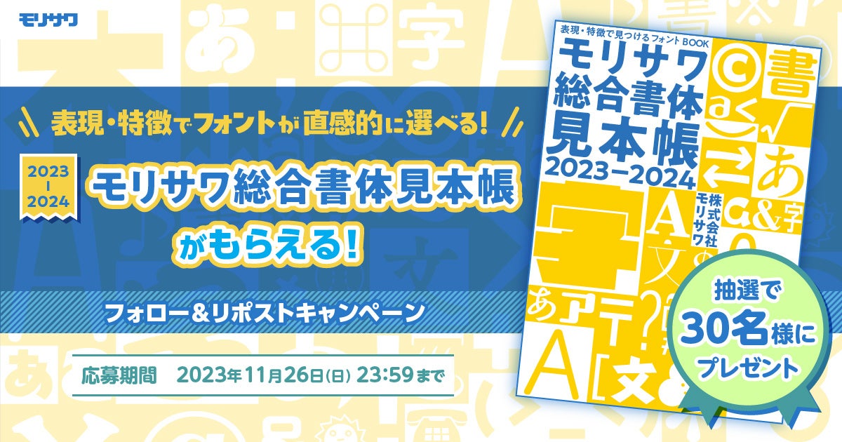 タイトル:モリサワ総合書体見本帳がもらえる!フォロー&リポストキャンペーン