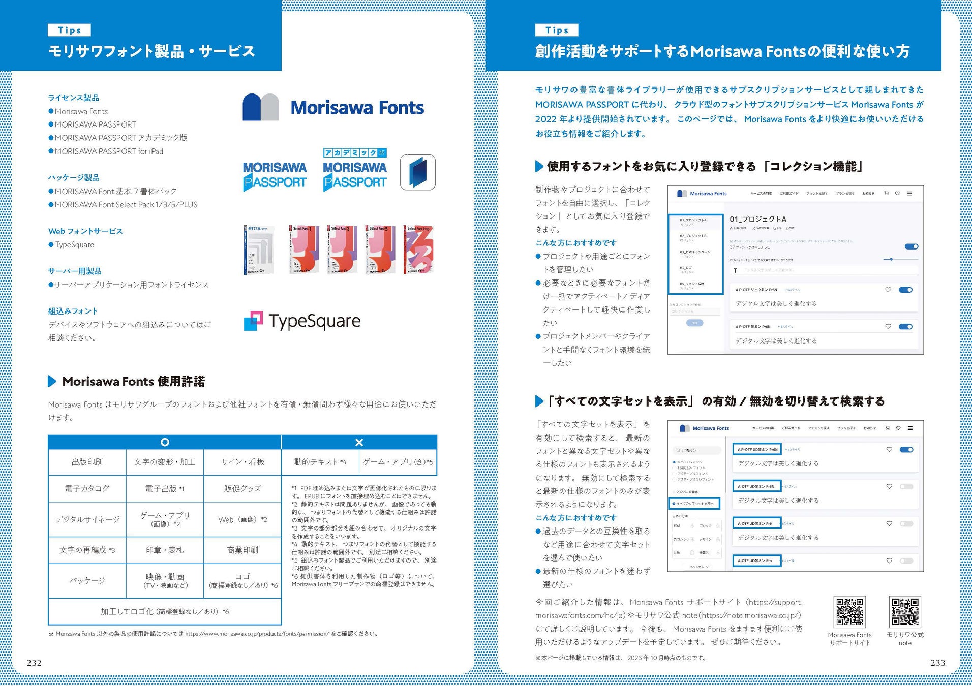 株式会社マイナビ出版「表現・特徴で見つけるフォントBOOK モリサワ総合書体見本帳 2023–2024」