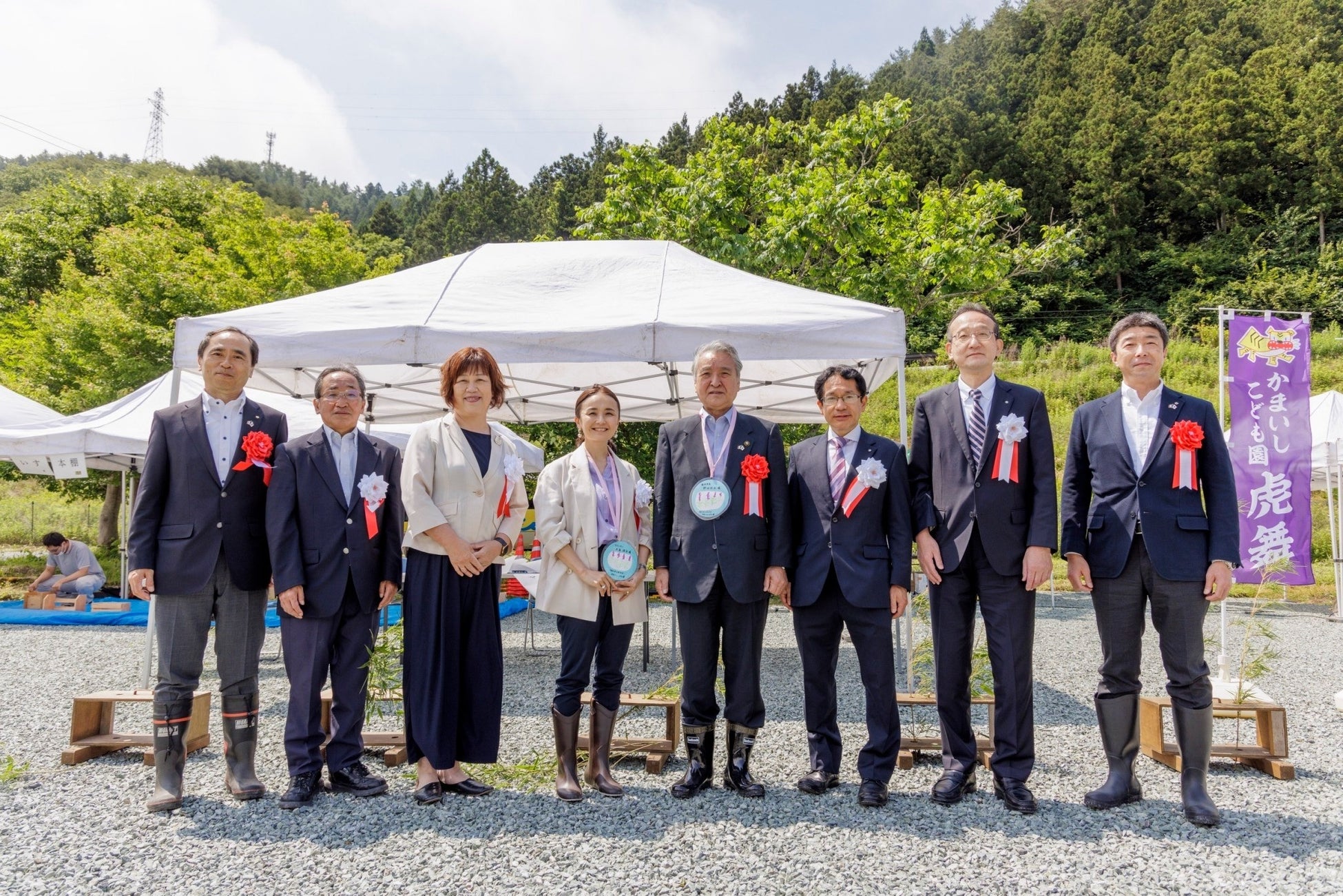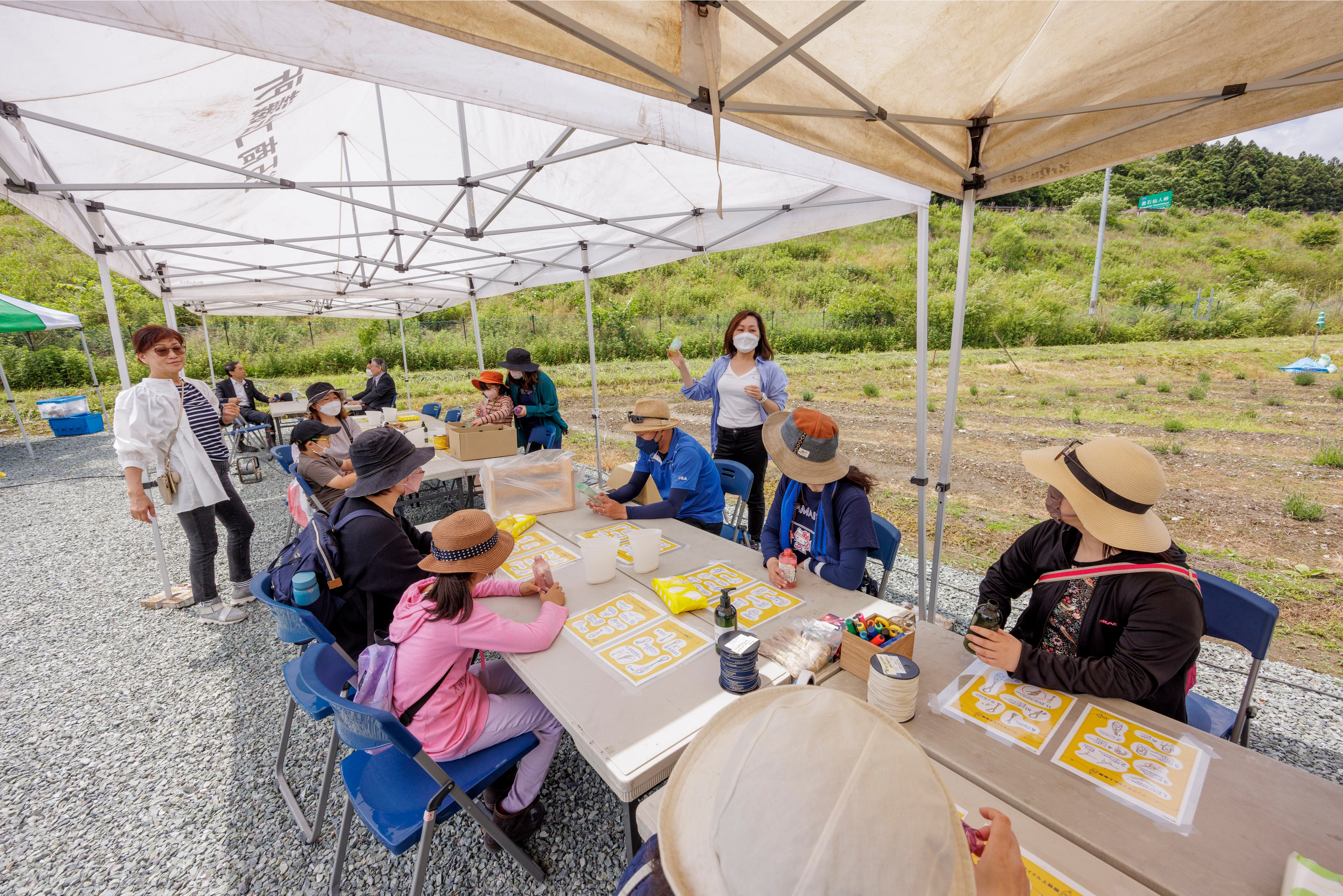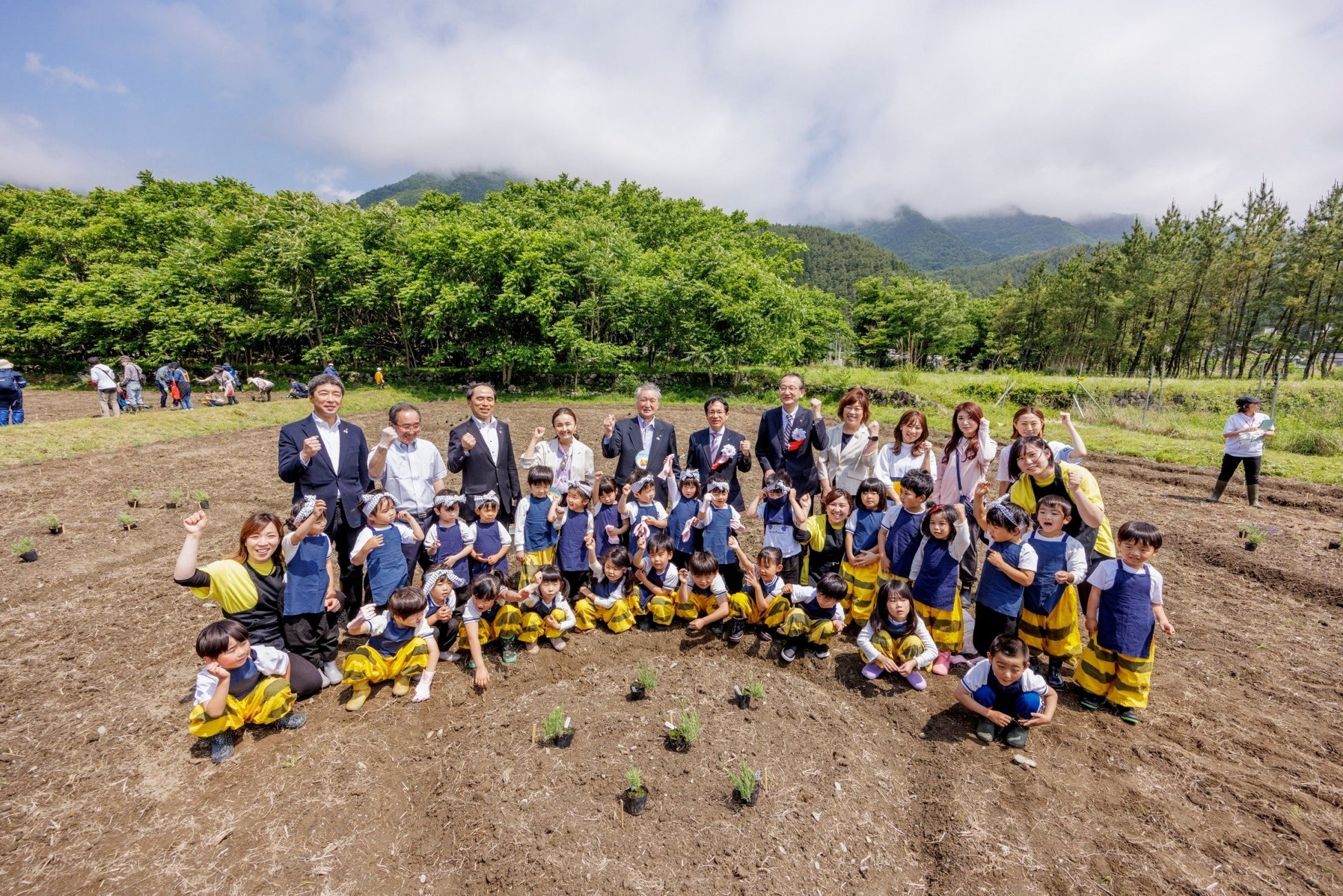 定植イベントには昨年の定植地から東側に整備された1,600㎡の土地に、釜石市の公募による20組(48名)の市民や野田武一釜石市長、木島潤子ロクシタンジャポン株式会社社長、かまいしこども園園児31名と保護者、さらにロクシタン社員10名を含む総勢約150名が参加しました。
