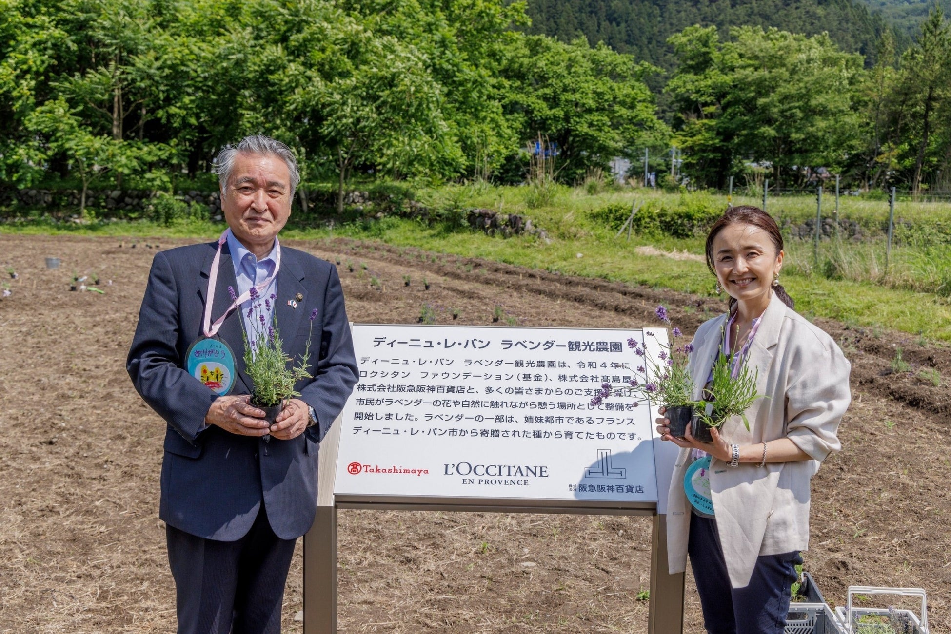 ディーニュ・レ・バン市はロクシタン創設者オリビエ・ボーサン生誕地であり、ラベンダーはブランドを象徴するハーブであることから、2022年5月に釜石市と同プロジェクトに関する連携協定を締結して支援を行っています。同年6月にクラウドファンディングを開始し、集めた資金は9月にフランス大使館で寄付目録授与式を実施いたしました。