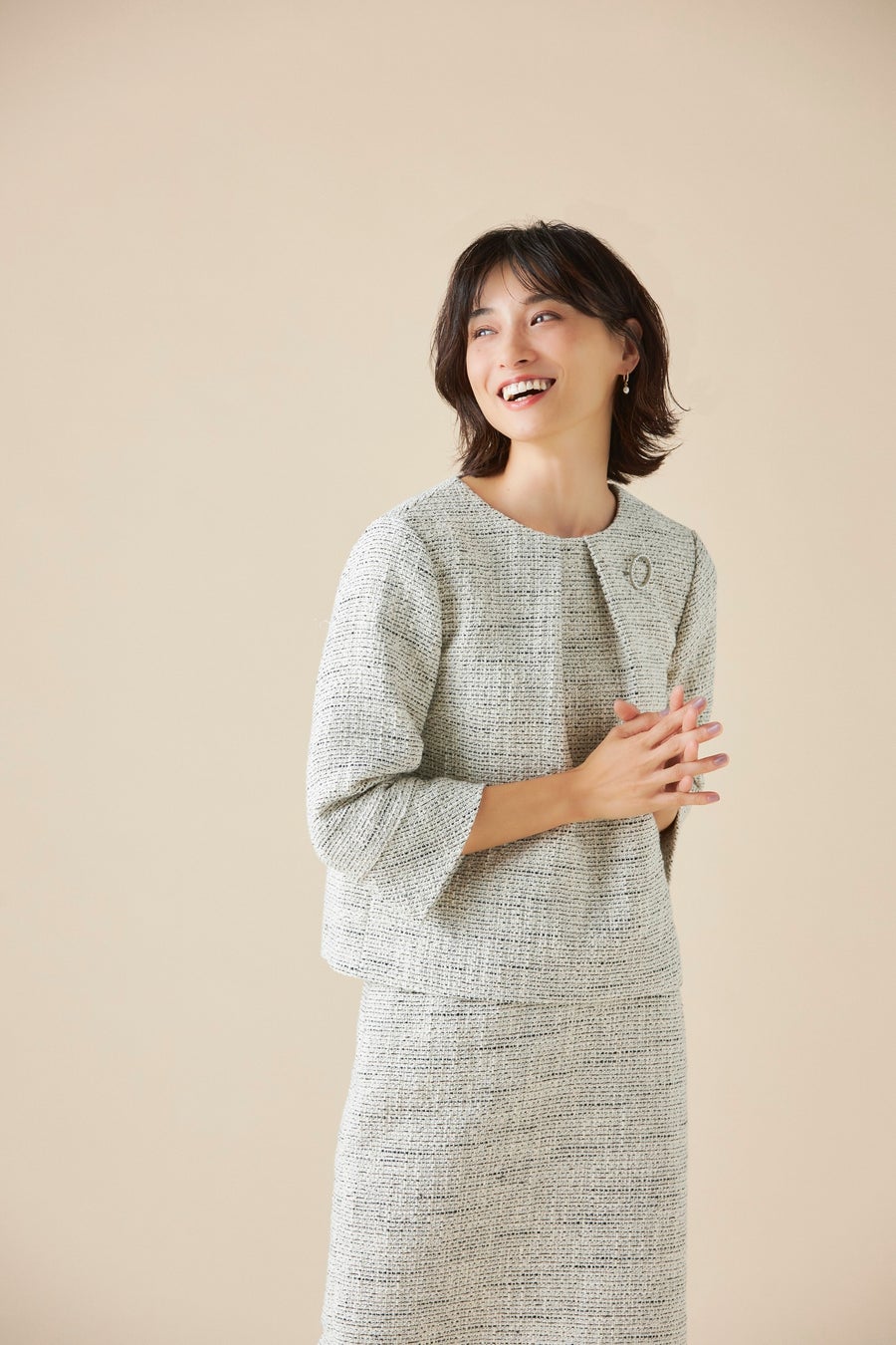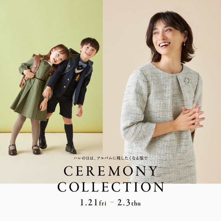 ママ向けのアイテムは、ツイードセットアップのような王道のセレモニーウェアから、ビジネスシーンやデイリーにも使える汎用性の高いマルチウェアまで、時代に寄り添ったアイテムが揃います。