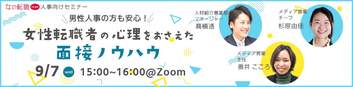 【9月7日開催】男性人事の方も安心!女性転職者の心理をおさえた面接ノウハウ/女の転職type人事向けオンラインセミナー
