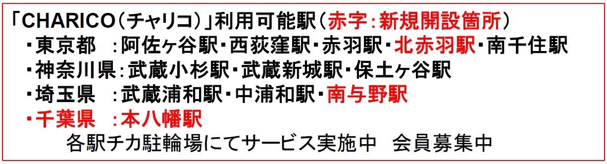 「CHARICO(チャリコ)」好評につき新たにサービス箇所を開設