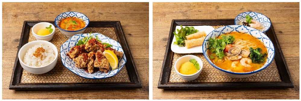外はカリッと中はジューシー、特製のスパイスミックスをふりかけた「オリエンタル風からあげ」や、マイルドなコクと控えめな酸味が決め手の「トムヤムクンヌードル」、そのほかタイ定番の「ガパオ」、こだわりの「スパイスカレー」など、国を越えてアジア中のグルメをご用意いたします。
