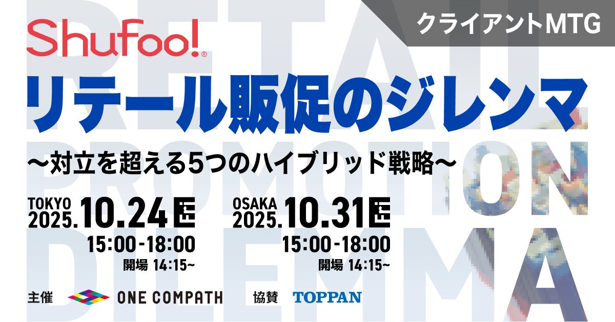 ONE COMPATH、リテール向けセミナーイベントを東京・大阪で開催「Shufoo!リテール販促のジレンマ~対立を超える5つのハイブリッド戦略~」