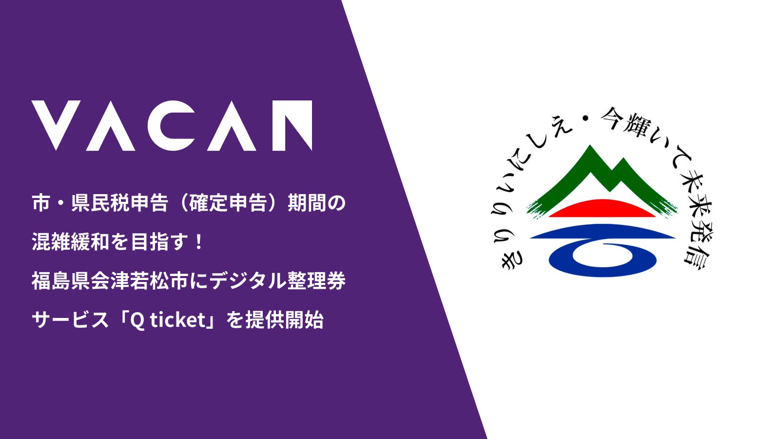 AI技術で混雑を可視化し、「人と空間を、テクノロジーで優しくつなぐ。」をミッションに、施設・エリアを支えるプラットフォームを活用したサービスを提供する株式会社バカン(本社:東京都中央区、代表取締役:河野剛進、以下「バカン」)は、福島県会津若松市にて、2026年の市・県民税申告(確定申告)期間に、整理券・順番待ち管理サービス「VACAN Q ticket(バカン キューチケット)」(以下、Q ticket)の提供を開始します。